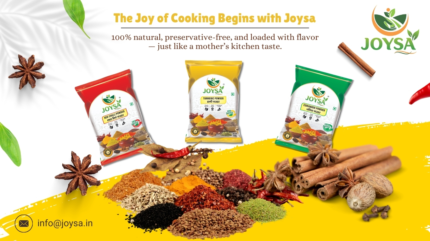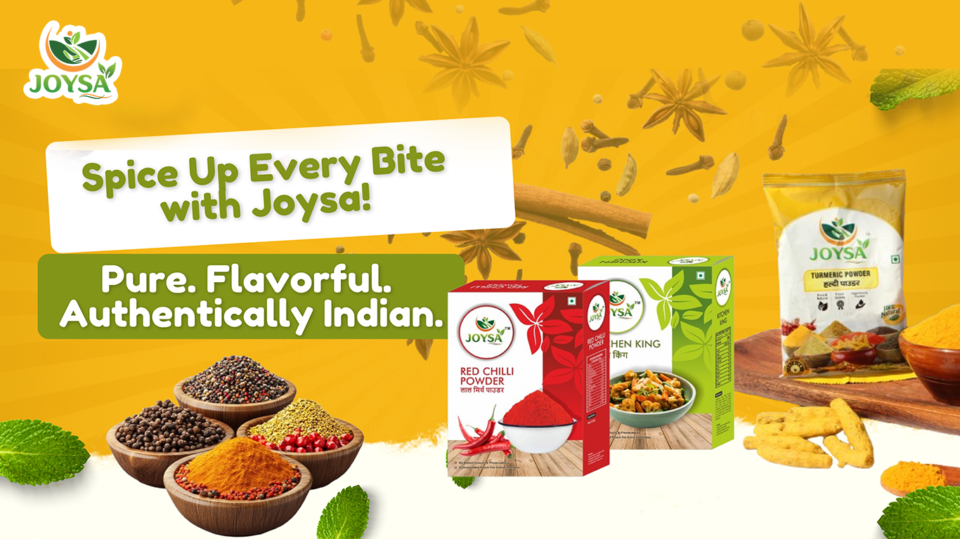 From the sizzle of tadka to the soul of biryani, Joysa is your partner in flavour at your doorstep. Ready to spice up your cooking? Dive into our world of aromatic blends and wholesome ingredients. We have wide range of spices from basic to blended spices and our newly launched khadey masala and Joysa Super Hing – we have got your covered!