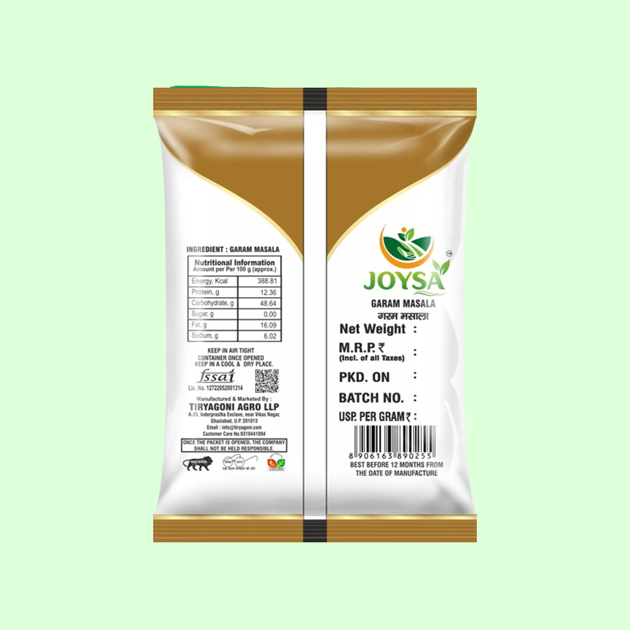 Joysa Garam Masala is a combination of multiple spices ground together in perfect combination to produce an all-purpose Indian spice. Joysa Garam Masala is prepared using Low Temperature Grinding, which makes all the simple masalas retain their original taste and complement each other. It adds a savoury and spicy taste to any simple dish and can be used across any Indian cuisine and dishes.